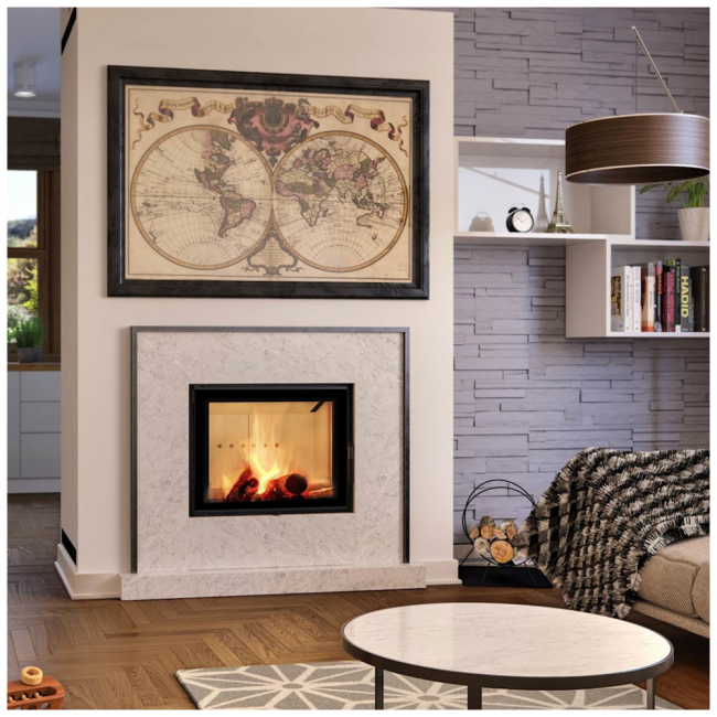 - Sticla decorativa grafitata rezistenta la 800° C care ofera un aspect modern si elegant, largind vizual partea frontala a focarului.