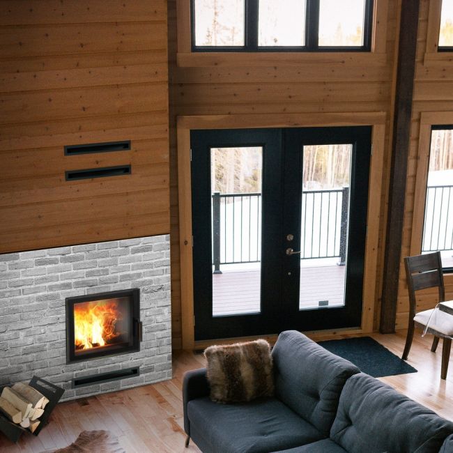 Aerul patrunde in acest focar semineu eficient in fata usii in partea de jos si sus, astfel se formeaza o perdea de aer care nu permite murdarirea sticlei. Prin orificiile de pe captuseala de samota de asemenea patrunde un aer preincalzit, care ajuta la arderea completa a gazelor din camera de ardere si asigura turbulenta optima din focar si un dans al flacarilor superb.