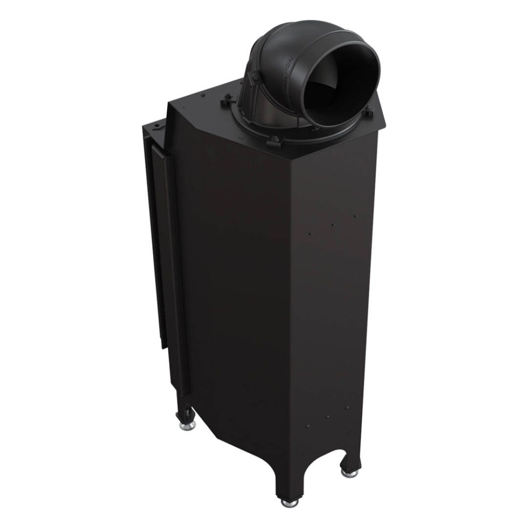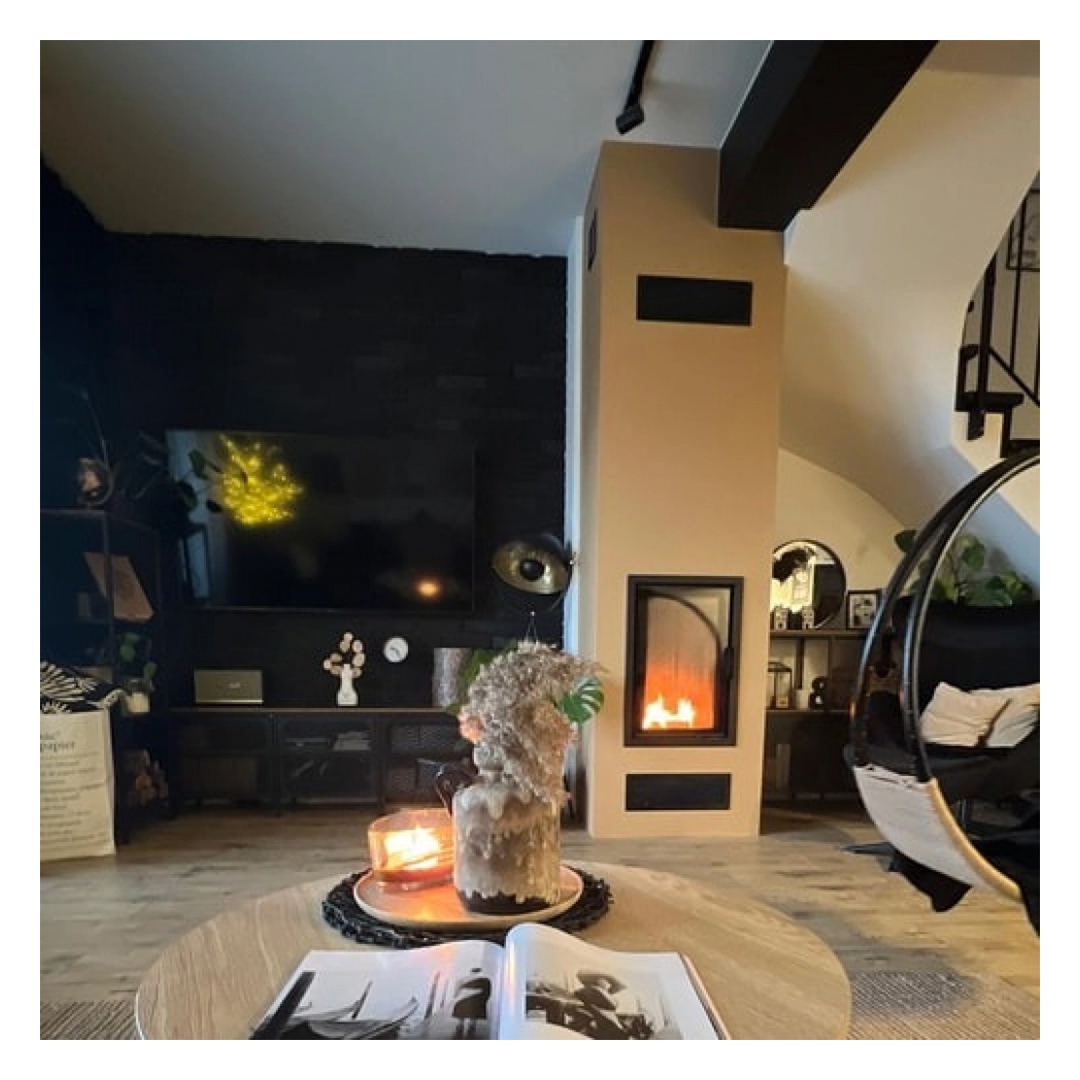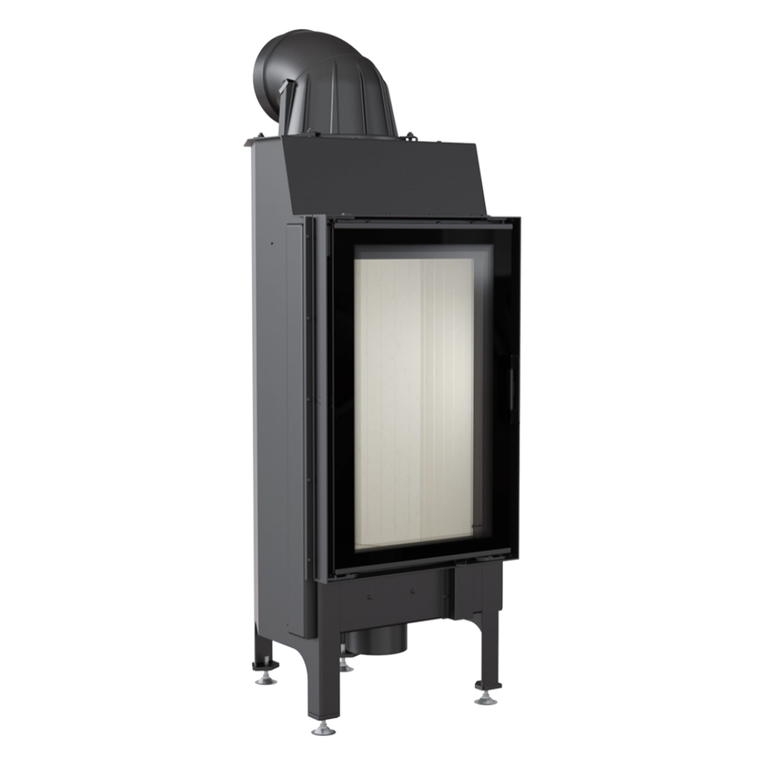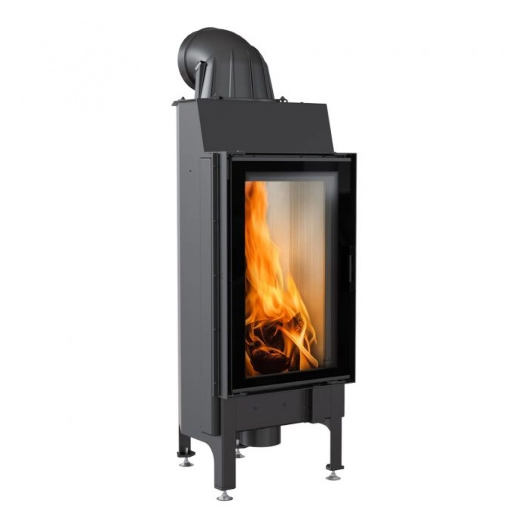 Focar cu design vertical, ideal pentru spatii de dimensiuni mai restranse. Acesta este dotat cu evacuare ajustabila, pentru o racordare usoara la cosul de fum, atat la 180 cat si la 90 grade. Datorita arderii pe vatra si a formei hexagonale a acestuia, rezulta o ardere mai ampla si reziduri de cenusa scazute, prin urmare o camera de combustie mai curata. Focarul vine si cu posibilitatea de a schimba directia de deschidere a usii acestuia, pentru a beneficia de o deschidere confortabila indiferent de locul unde este amplasat. Sticla dubla din dotare previne depunerile de murdarie pe geamul focarului.