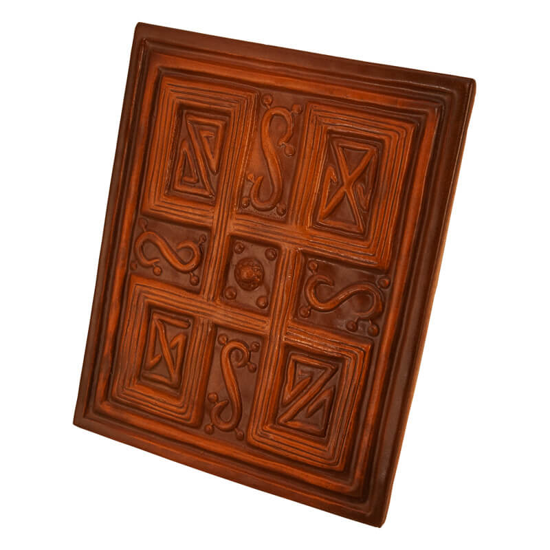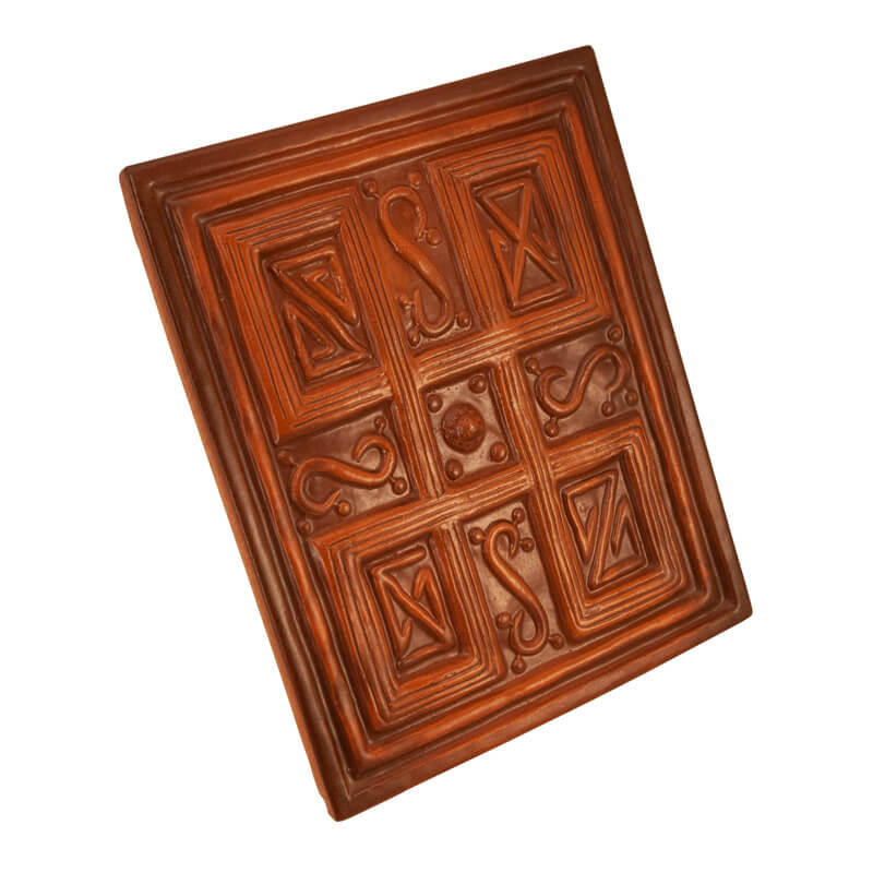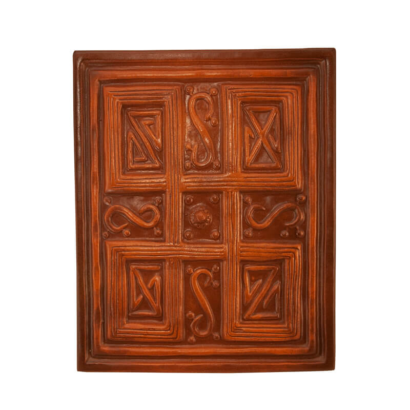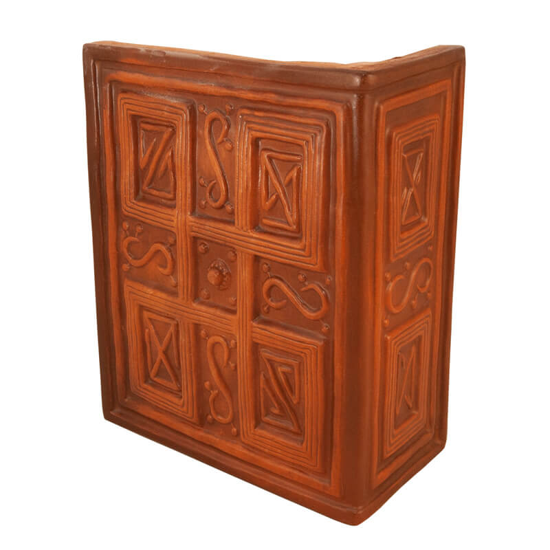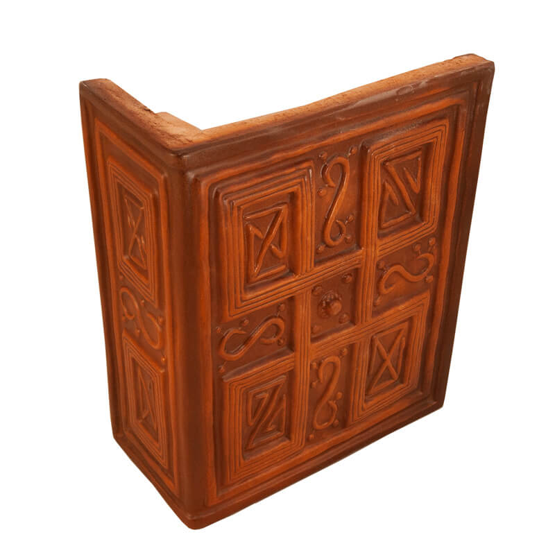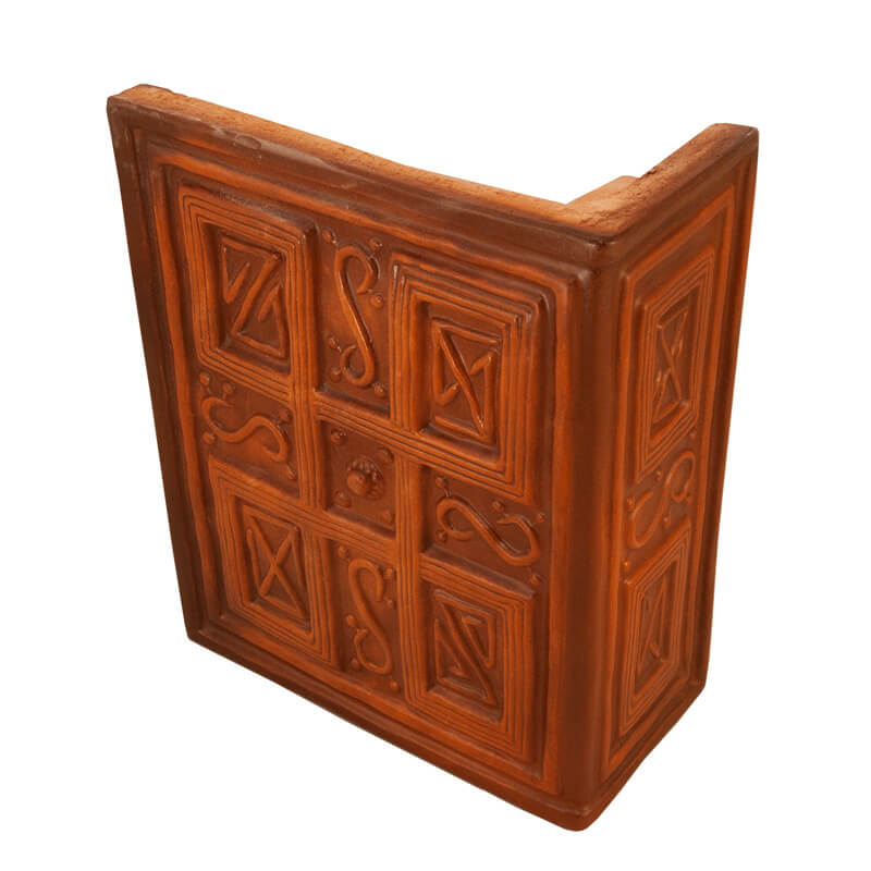 Cahla de teracota decorata cu model geometric. O putem glazura intr-o multitudine de culori, pentru mai multe detalii despre gama de culori accesati acest link.