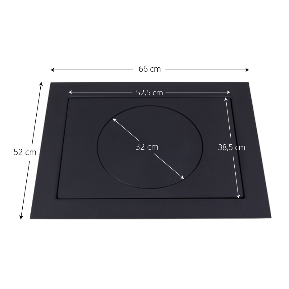 Plita realizata din fonta, prevazuta cu rama metalica. O poti folosi pentru a dota soba de teracota, soba cu plita sau soba cizma cu functia de gatire. Ele se pot folosi la sobe de teracote in bucatarii, dar si la sobele din gradina, exterioare, la gratarele din curte, care sunt la moda acum, fiind centrele de atractie pentru familie si prietenii care vin in vizita.
