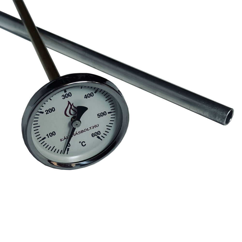 Este compusa din ceasul de termometru, tija pentru masurarea temperaturii si o teava protectoare. Masoara intre 0 – 600 grade Celsius. Trebuie ferit de inghet. Diametrul ecranului este de 6,3 cm, tija are o lungime de 40 cm. Acest termometru trebuie montat pe corpul cuptorului astfel incat senzorul sa intre in cuptor aproximativ 5 – 10 cm.