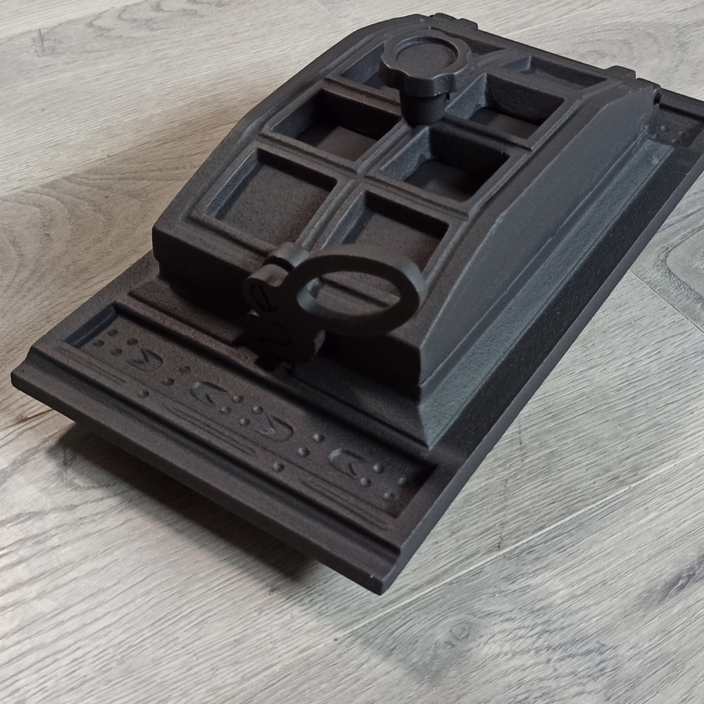 Usa de cenusar realizata in stil clasic, bogat ronamentat, care se potriveste la sobele de teracota realizate in stiluri arhitecturale variate. Usa este realizata din fonta de calitate superioara, prevazuta cu snur de etansare la inchidere. Se poate cumpara si ca set impreuna cu usa de soba K3645.