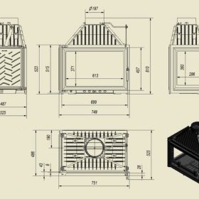 Focar semineu N140 sticla dreapta + deschidere verticala si samota neagra