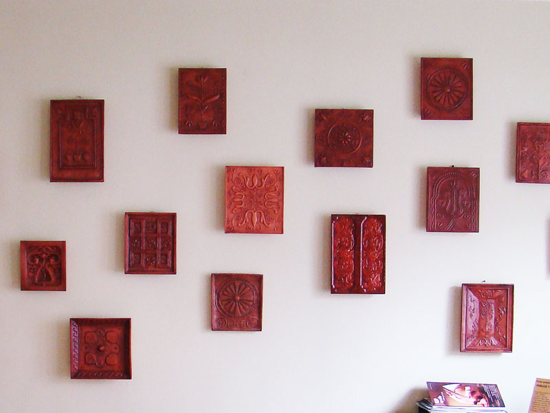 Cahla de soba cu rame laterale, nesmaltuita, cu decor in relief in stil baroc, reprezentand doua flori stilizate care se inalta din vase elenistice, iar intre ele fiind reprezentat pomul vietii. Secolul al XVII-lea, Odorheiu Secuiesc.