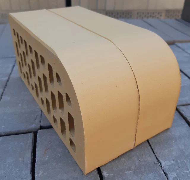 Caramida colt rotunjit Klinker galbena, rezistenta la inghet, pentru constructia gratarelor, gardurilor sau fatadelor la casele de locuit.
