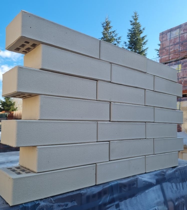 Caramida Klinker alba/bej, rezistenta la inghet, pentru constructia gratarelor, gardurilor sau fatadelor la casele de locuit.