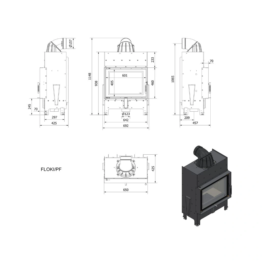 Semineul FLOTEK este dotat cu un sistem de aerisire avansat, care optimizeaza procesul de ardere. Aerul primar este furnizat sub gratar, facilitand aprinderea lemnului. Aerul secundar este distribuit pe peretii din spate si laterali ai camerei de ardere, asigurand o ardere eficienta a gazelor si reducand emisiile de substante nocive. Perdeaua de aer furnizeaza o sursa suplimentara de aer de combustie, curatand eficient sticla de particule de funingine. De asemenea, un deflector din vermiculit prelungeste traseul gazelor de ardere, crescand eficienta combustiei si utilizarea optima a energiei.
