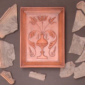 Avem o gama variata de decoruri ceramice, pe care le poti folosi ca si decor de perete, decoruri pentru sobe si seminee. Printre aceste decoruri amintim steme si blazoane, decoruri ceramice realizate pe baza unor obiecte de orfevrarie de mici dimensiuni, dar am reconstruit peste 160 modele de cahle de teracota, care la fel se pot folosi ca si elemente de decor pentru sobe sau decorarea peretilor, a fatadei casei.