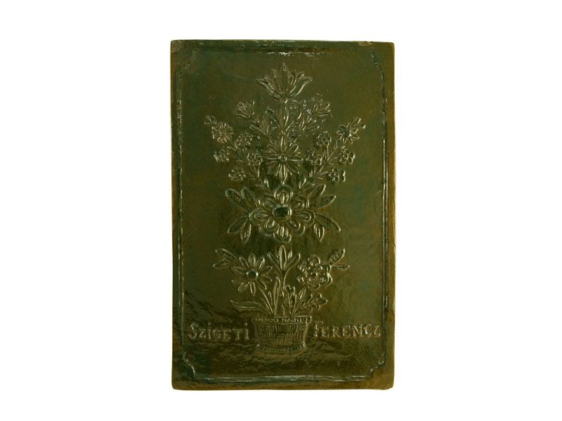 Cahla de format mare, dreptunghiulara, smaltuita in culoarea verde, decor in relief cu motive ornamentale florale. Secolul al XIX-lea, Targu Secuiesc.