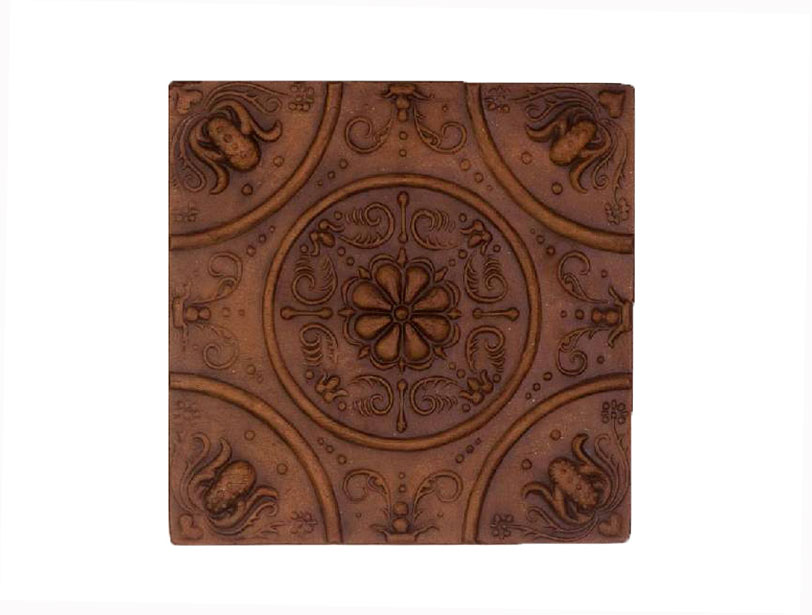 Cahla de soba nesmaltuita, reconstruita pe baza unor fragmente gasite in urma sapaturilor arheologice de pe teritoriul Muzeului Secuiesc al Ciucului, decorat cu motive ornamentale geometrice, florale si fitomorfe.  Secolul al XVII-lea, Miercurea Ciuc.