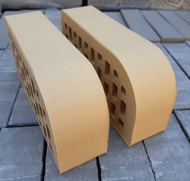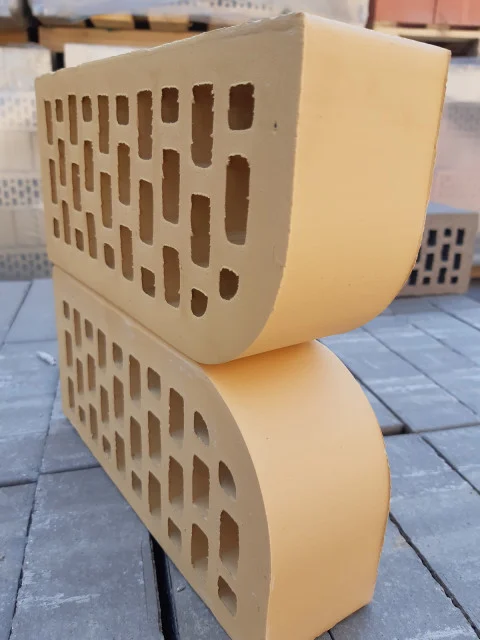 Caramida colt rotunjit Klinker galbena, rezistenta la inghet, pentru constructia gratarelor, gardurilor sau fatadelor la casele de locuit.