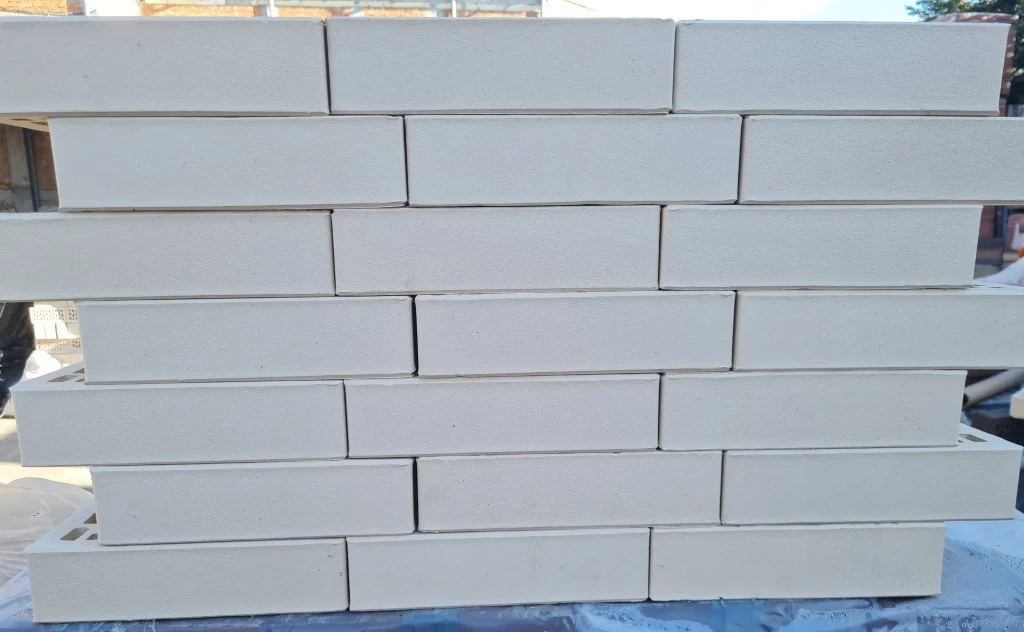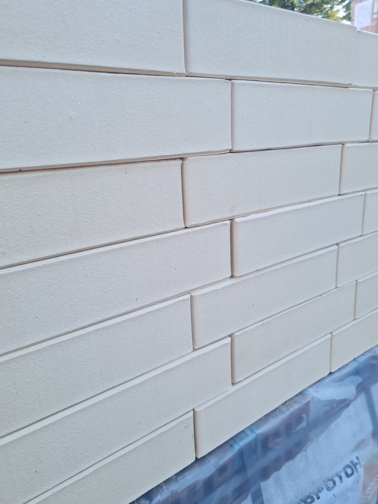 Caramida Klinker alba/bej, rezistenta la inghet, pentru constructia gratarelor, gardurilor sau fatadelor la casele de locuit.