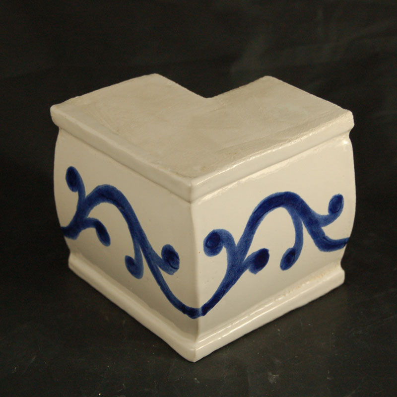 Colt cornisa pictat manual, pentru a fi folosit la constructia sobelor sau semineelor de teracota pictate. Culoarea de accent se alege in functie de culoarea cu care se picteaza placile si restul sobei.
