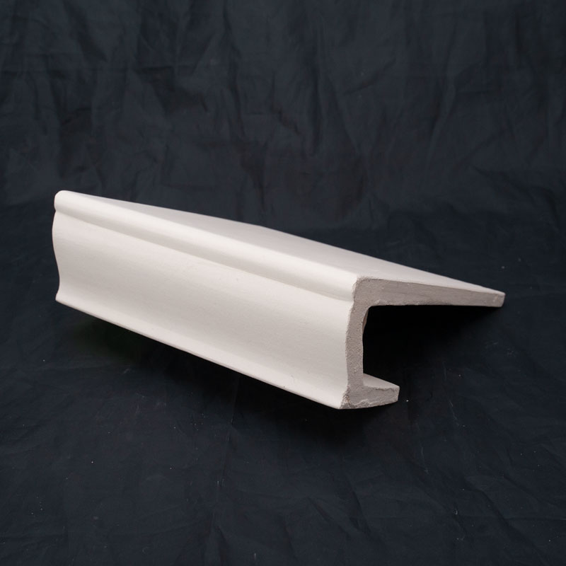 Realizat prin turnare, din materie prima adusa din Germania, astfel rezulta o piesa durabila, rezistenta. De obicei se folosesc ca si cornisa mijloc, pentru a forma o polita pe soba sau semineu. Este o cornisa cu adancime mare, de 23 cm.