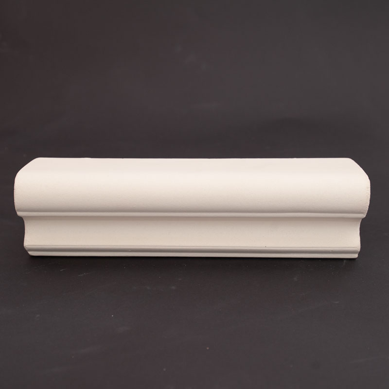 Realizat prin turnare, din materie prima adusa din Germania, astfel rezulta o piesa durabila, rezistenta. De obicei se folosesc ca si cornisa mijloc, pentru a forma o polita pe soba sau semineu. Este o cornisa cu adancime mare, de 23 cm.
