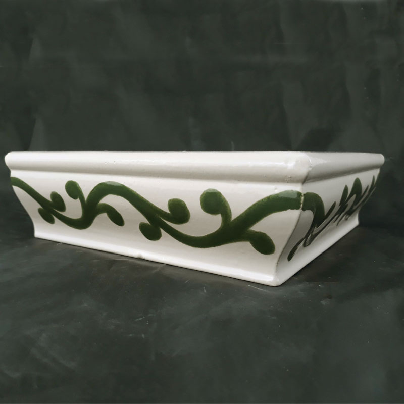 Colt cornisa pictat manual, pentru a fi folosit la constructia sobelor sau semineelor de teracota pictate. Culoarea de accent se alege in functie de culoarea cu care se picteaza placile si restul sobei.