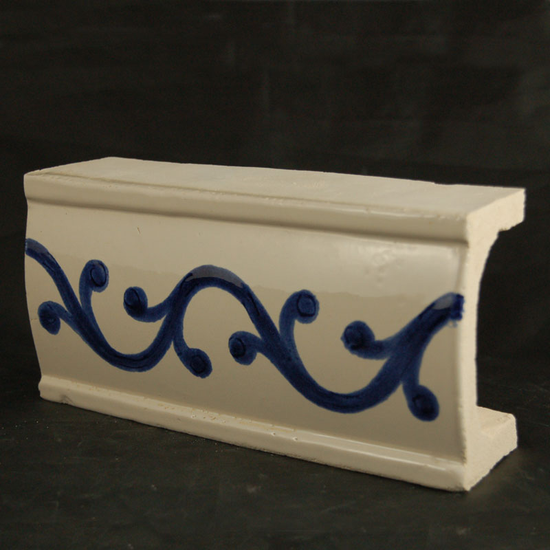 Cornisa pictata manual, pentru a fi folosit la constructia sobelor sau semineelor de teracota pictate. Culoarea de accent se alege in functie de culoarea cu care se picteaza placile si restul sobei.
