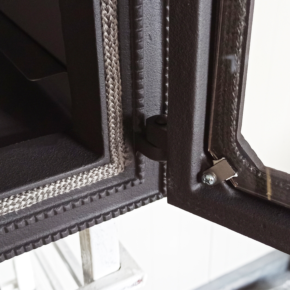 Usa este prevazuta cu geam termorezistent cu o grosime de 4 mm, astfel puteti vedea exact ce se intampla in cuptor, cand este gata mancarea pe care o gatiti. Usa este prevazuta cu inchidere etansa, prin snur termorezistent fara continut de azbest, care nu dauneaza sanatatii.