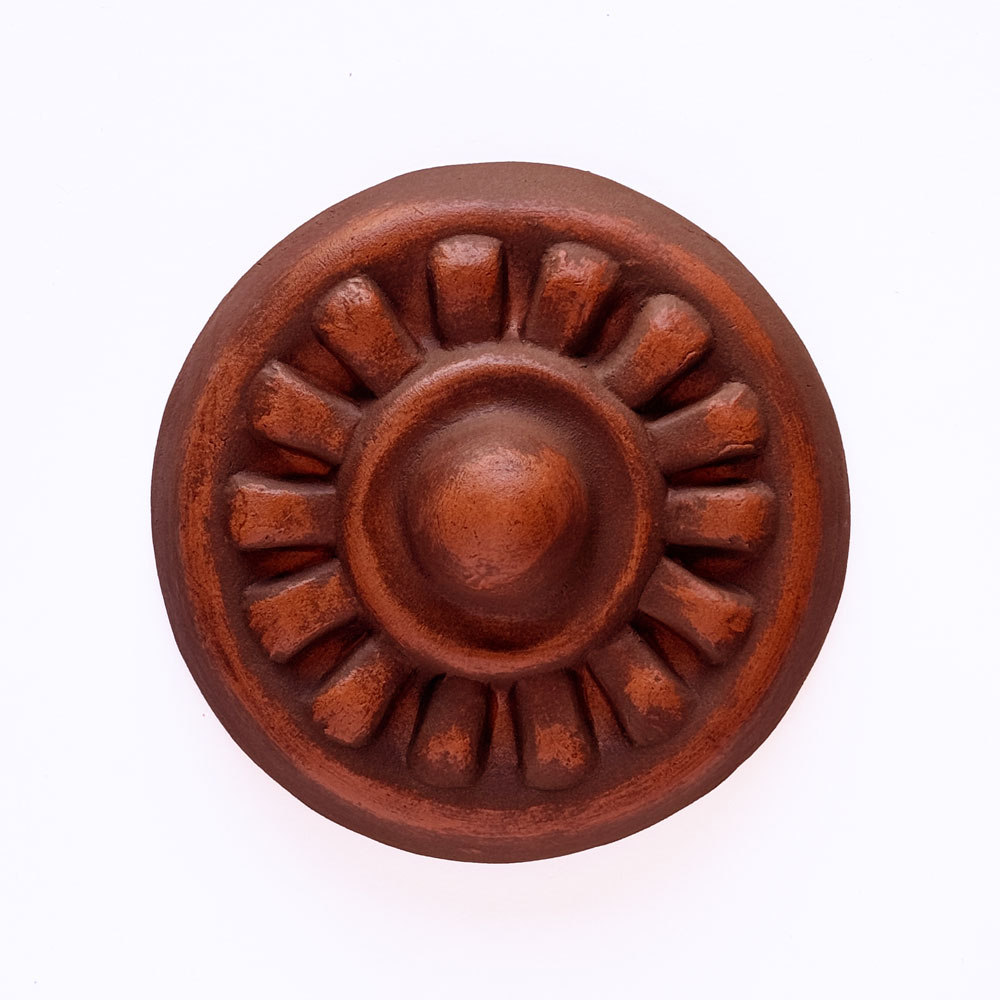 Decor ceramic, inspirat dintr-un decor de orfevrarie. Are diametrul de 12 cm si se poate comanda in mai multe culori, cu glazura lucioasa sau mata.