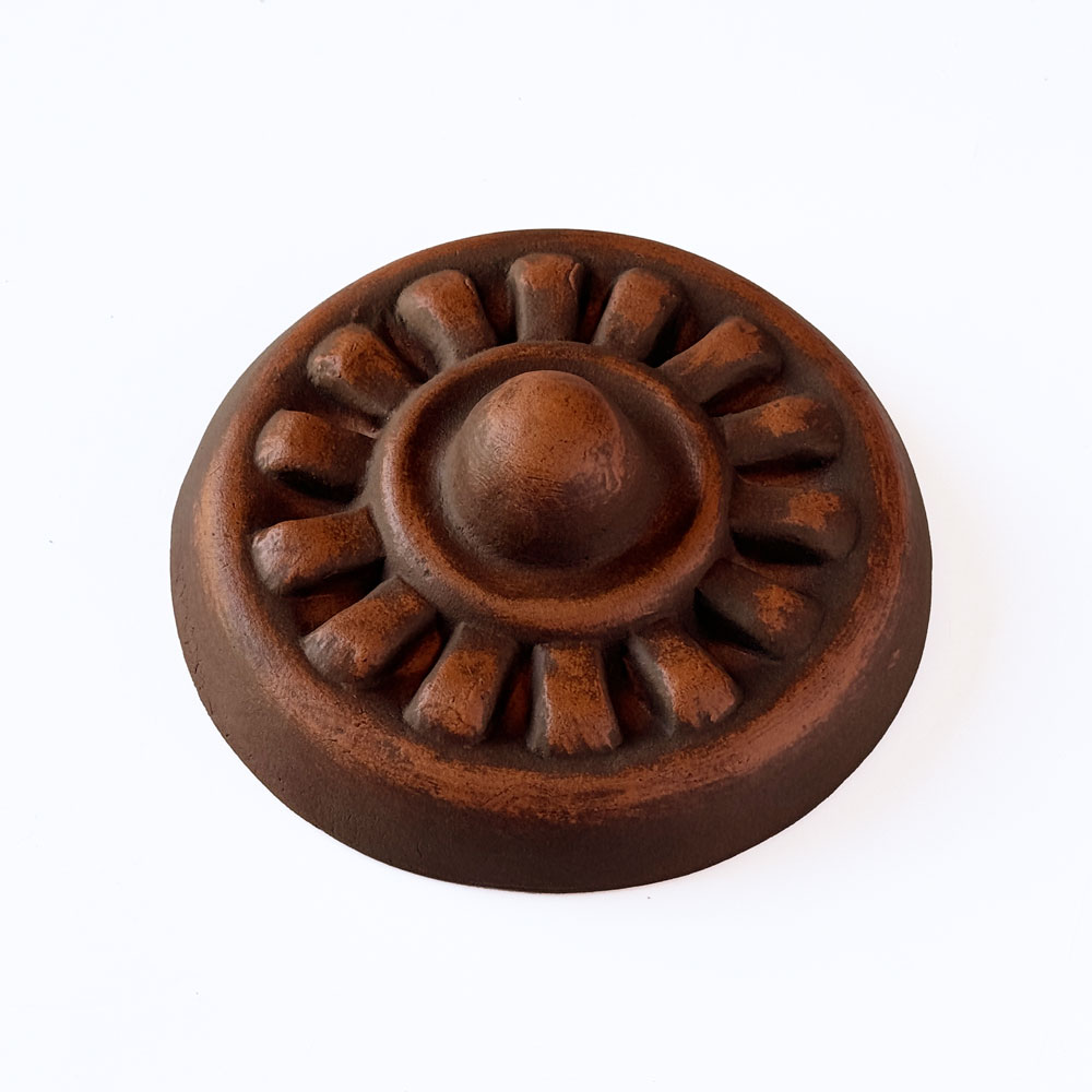 Decor ceramic, inspirat dintr-un decor de orfevrarie. Are diametrul de 12 cm si se poate comanda in mai multe  culori, cu glazura lucioasa sau mata.