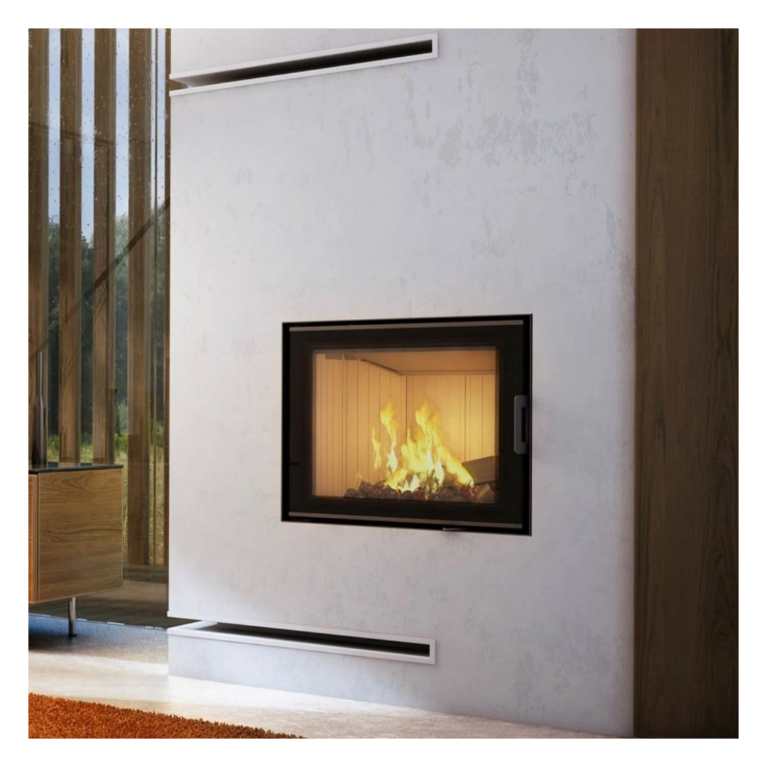 Un focar de semineu din gama PRO de la Kratki, cu un design minimal, simplu, dar elegant. Prin usa prevazuta cu sticla termorezistenta aveti o vedere ampla asupra flacarilor, astfel focarul incepe sa incalzeasca spatiul mai rapid. Datorita captuselii din samota, temperatura din camera de ardere va fi mai mare, astfel va creste si eficienta arderii, se consuma mai putin combustibil.