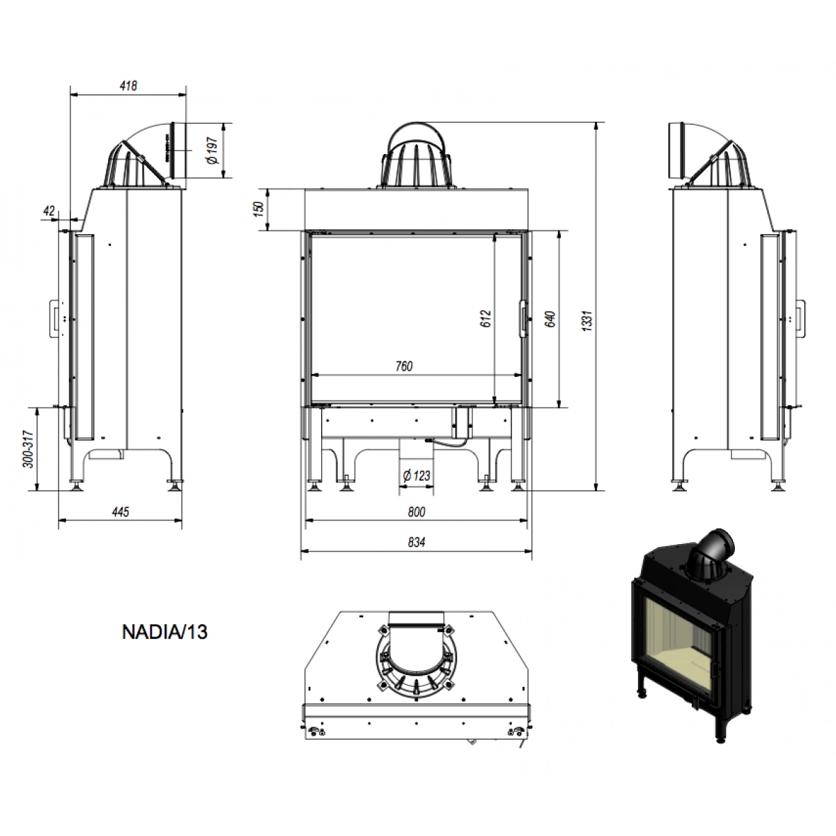 • Focarul este echipat cu racord pentru admisie a aerului din exterior de fi 125mm.