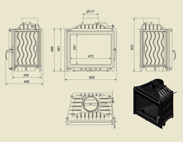 Este un focar din fonta, avand peretii cu o grosime de 8 mm, cu o constructie solida si durabila, prevazut cu numeroase lamele de fonta la exterior rezultand o incalzire mult mai rapida a aerului de convectie datorita suprafetei mari de schimb termic.