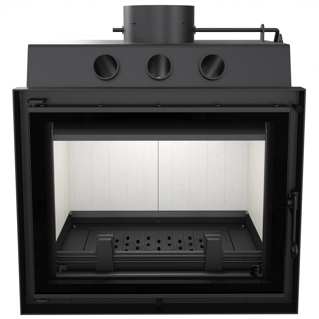 Focar din otel captusit cu samota si dotat cu clapeta de tiraj si sticla decorativa. Focarul este captusit la interior cu samota pentru o ardere mai ampla rezultand astfel o cantitate redusa de reziduri. Pentru o eficienta crescuta, focarul este echipat cu un sistem de tevi pentru recuperarea caldurii, amplsat in conul acestuia. Focarul dispune de usa cu design modern, ce mareste vizual deschiderea frontala a acestuia.