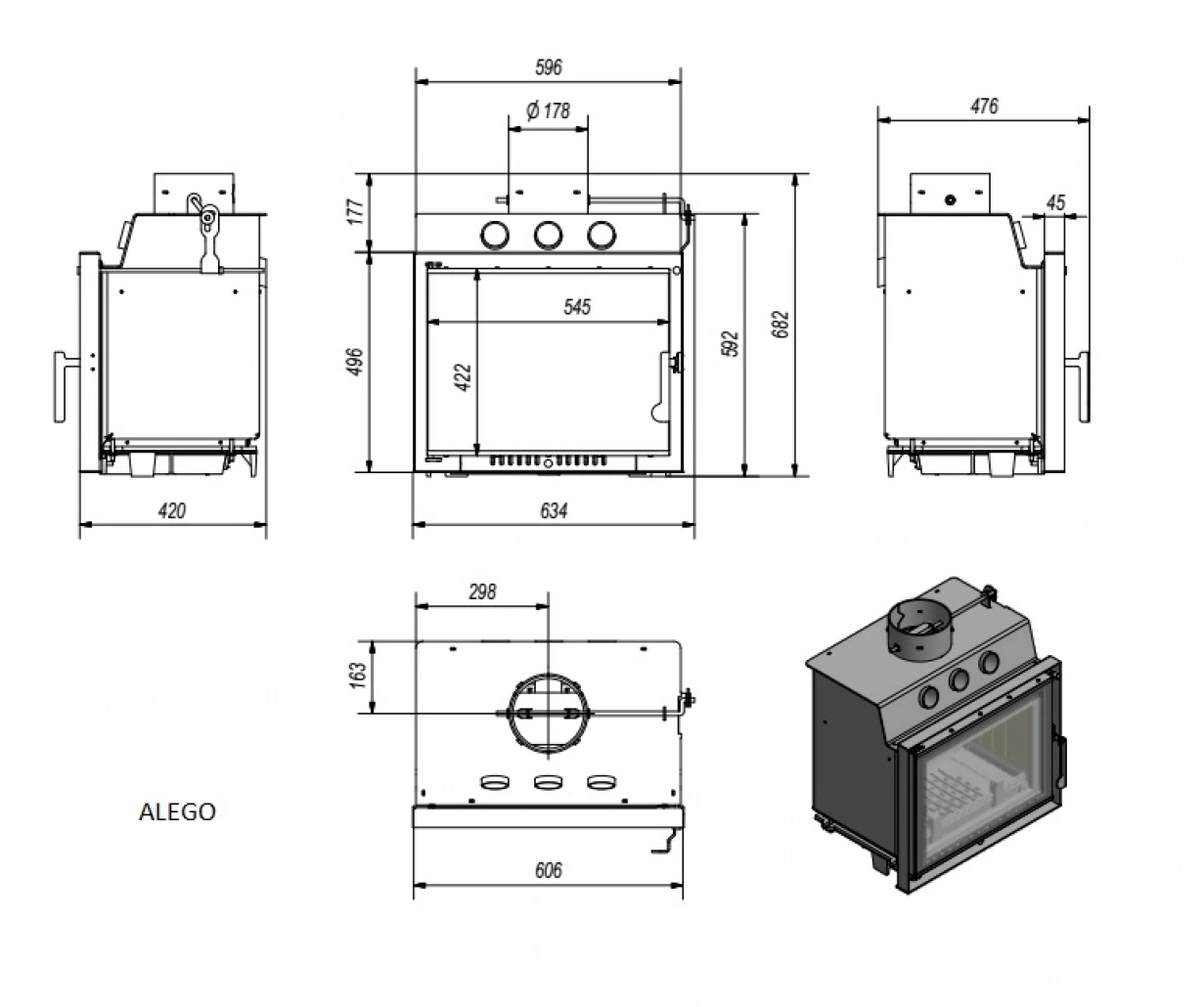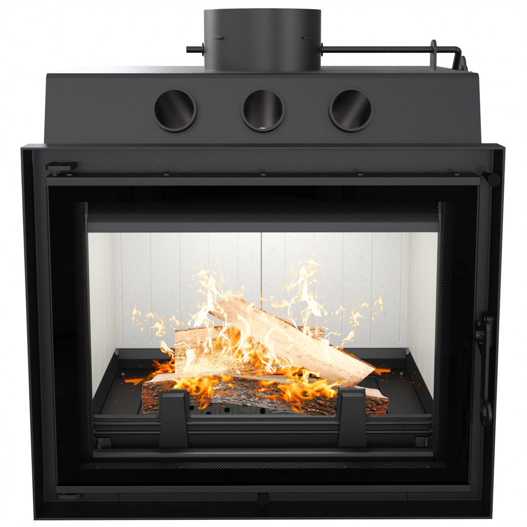 Baza focarului cat si cenusarul sunt fabricate din fonta refractara din clasa 200. Posibilitate de racordare a aerului de ardere din exterior pentru a asigura un tiraj mai bun si a nu consuma oxigen din incapere. Sticla decorativa grafitata care ofera un aspect modern si elegant, largind vizual partea frontala a focarului. Etansari perfecte multumita sudurilor solide realizate într-un ecran protector cu gaze nobile. Control manual asupra procesului de ardere amplasat pe cenusar in partea inferioara a focarului. Focarul este echipat cu rama de montaj. Optimizarea temperaturii multumita samotei ce creeaza o ardere mai completa, cenusa mai putina si o sticla mai curata. Opritorul de lemne decorativ ajuta la mentinerea curateniei si protejeaza impotriva caderii lemnelor si a cenusei.