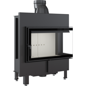 Sticla decorativa grafitata rezistenta la 800° C care ofera un aspect modern si elegant, largind vizual partea frontala a focarului. Focarul este prevazut cu gratar si cenusar generos (sertar) amplasat in vatra pentru colectarea cenusei.