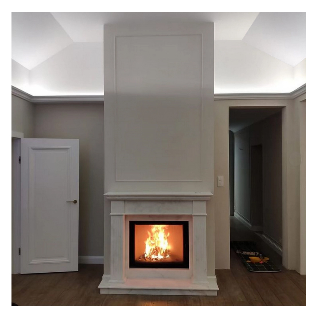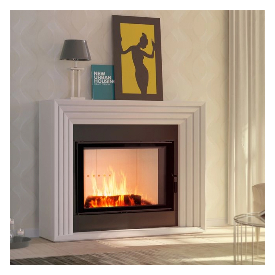 Focar profesional din otel cu interior captusit cu samota cu tripla combustie. Aer de ardere din exterior si evacuare cu deflector dublu si con de fonta.