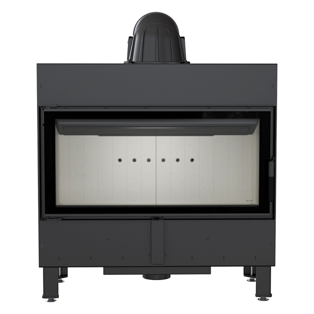 Focar de calitate inalta pentru semineu pe lemne, cu putere mare si randament crescut, ideal pentru a incalzi suprafete mari pana la 160 mp. Este prevazut cu deflector dublu si are dubla combustie de aer. Conul este fabricat din fonta, cu posibilitatea de reglare a unghiului.