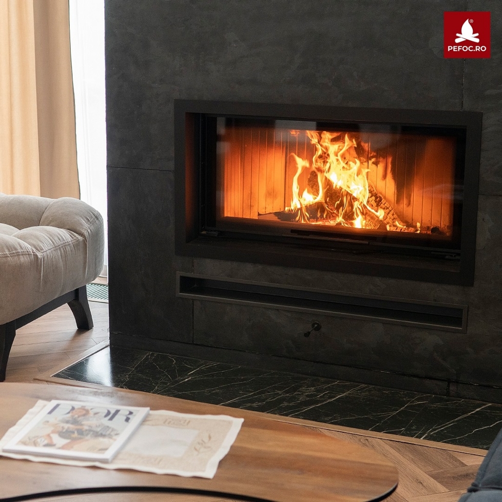 Solutii moderne. Focarul este prevazut cu racord pentru priza de aer exterior, astfel oxigenul din camera va ramane pentru consum uman, in loc sa fie folosit de catre focar pentru alimentarea cu aer a camerei de ardere. Daca aveti un cos de fum performant, semineul va functiona in circuit inchis, luand aerul pentru ardere din afara cladirii, fumul iesind prin cosul de fum etans. Acest focar dispune de sticla vitroceramica, termorezistenta pana la 800 de grade Celsius.