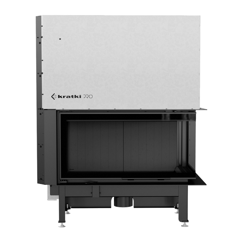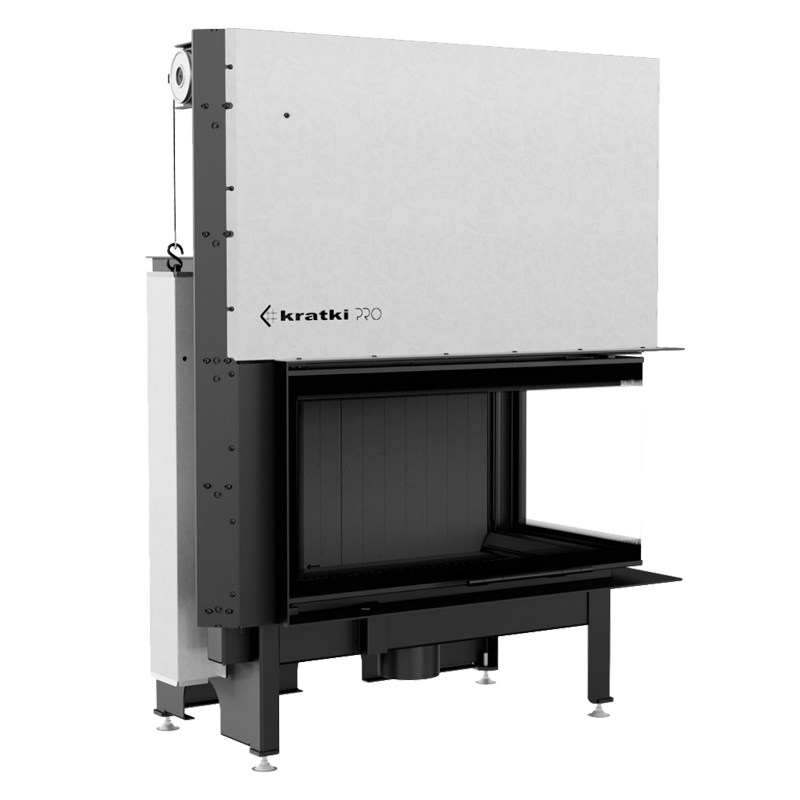 Sticla decorativa grafitata rezistenta la 800° C care ofera un aspect modern si elegant, largind vizual partea frontala a focarului. Sistem special deschidere verticala stil lift. Pentru curatare usa poate fi deschisa standard (orizontal).