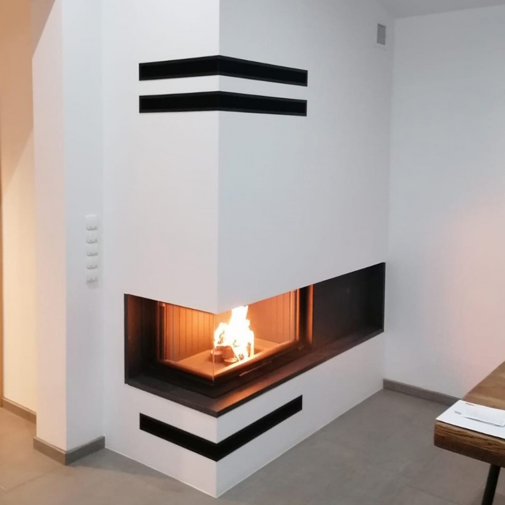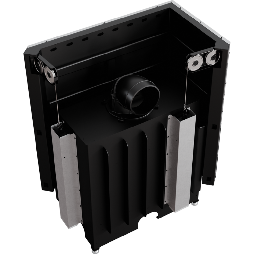 Sticla decorativa grafitata rezistenta la 800° C care ofera un aspect modern si elegant, largind vizual partea frontala a focarului. Sistem special deschidere verticala stil lift. Pentru curatare usa poate fi deschisa standard (orizontal).