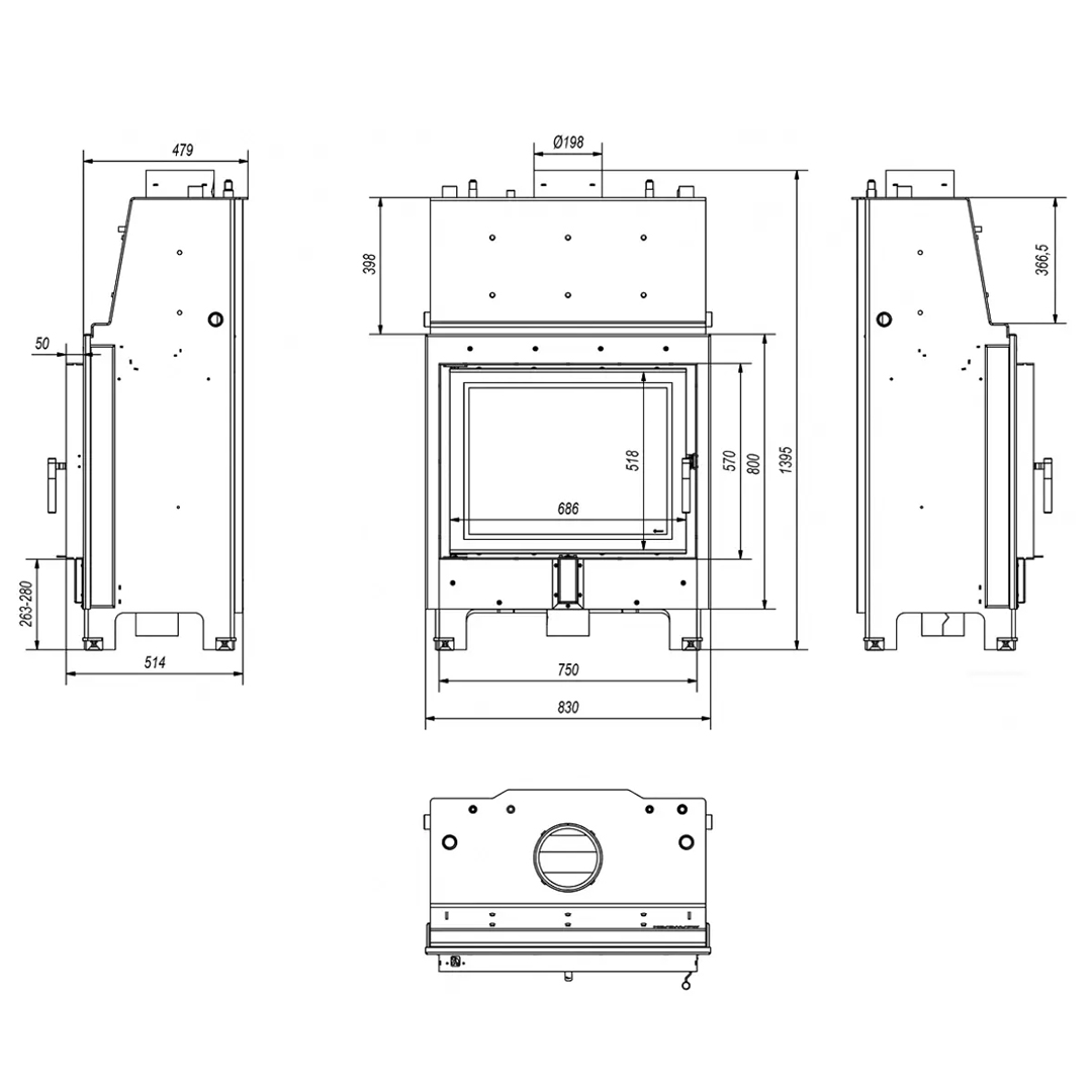 Un focar de termosemineu premium, calitate austriaca, destinat oamenilor care apreciaza calitatea si atentia la detalii. Are captuseala din samota in interiorul focarului, care asigura o ardere curata, la temperatura inalta, astfel depunerile sunt minime. Focarul are o greutate de 202 kg, iar puterea nominala este de 12,5%, din care dezvolta 9 kW pe partea de apa. Plaja de putere este intre 6 – 17 kW. Acest focar de termosemineu este inclus in clasa energetica A+