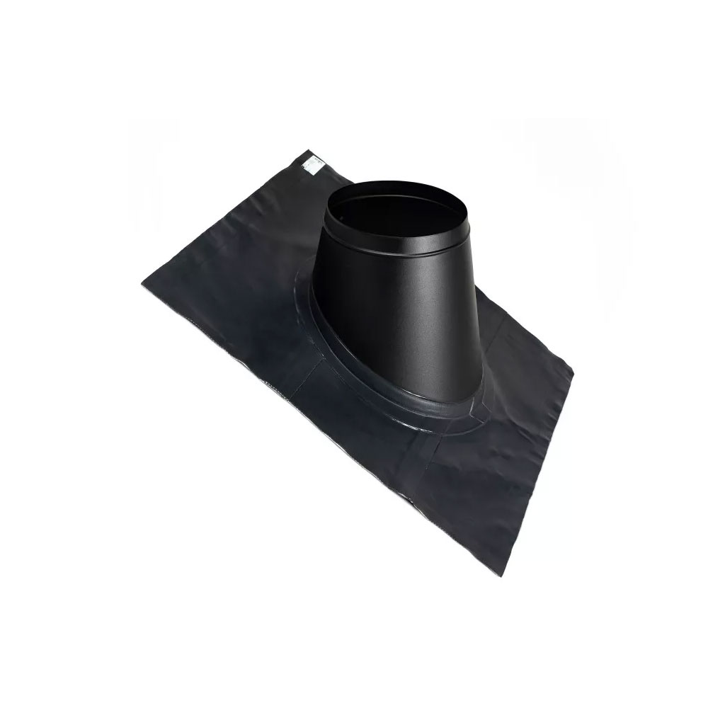 Placa invelitoare, pentru cos de fum metalic, Fi200, aceasta piesa se foloseste la trecerile prin acoperis unde inclinatia acoperisului este intre 36-45 grade. Culoarea este neagra.