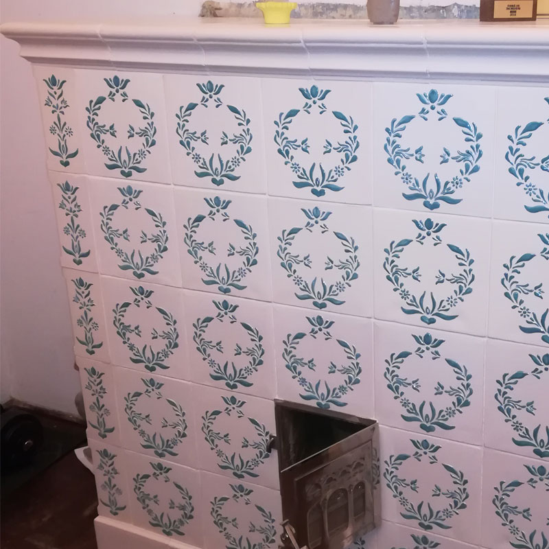 Aceasta cahla se realizeaza prin turnare, din materie prima adusa din Germania. Pe un fond alb sau crem deschis se poate picta cu orice culoare de accent, cum sunt albastru, verde, rosu etc. Se realizeaza la comanda.