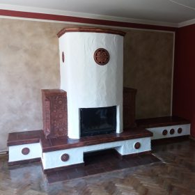 Cahla de soba nesmaltuita, reconstruita pe baza unor fragmente gasite in urma sapaturilor arheologice de pe teritoriul Muzeului Secuiesc al Ciucului, decorat cu motive ornamentale geometrice, florale si fitomorfe. Secolul al XVII – lea, Miercurea Ciuc.