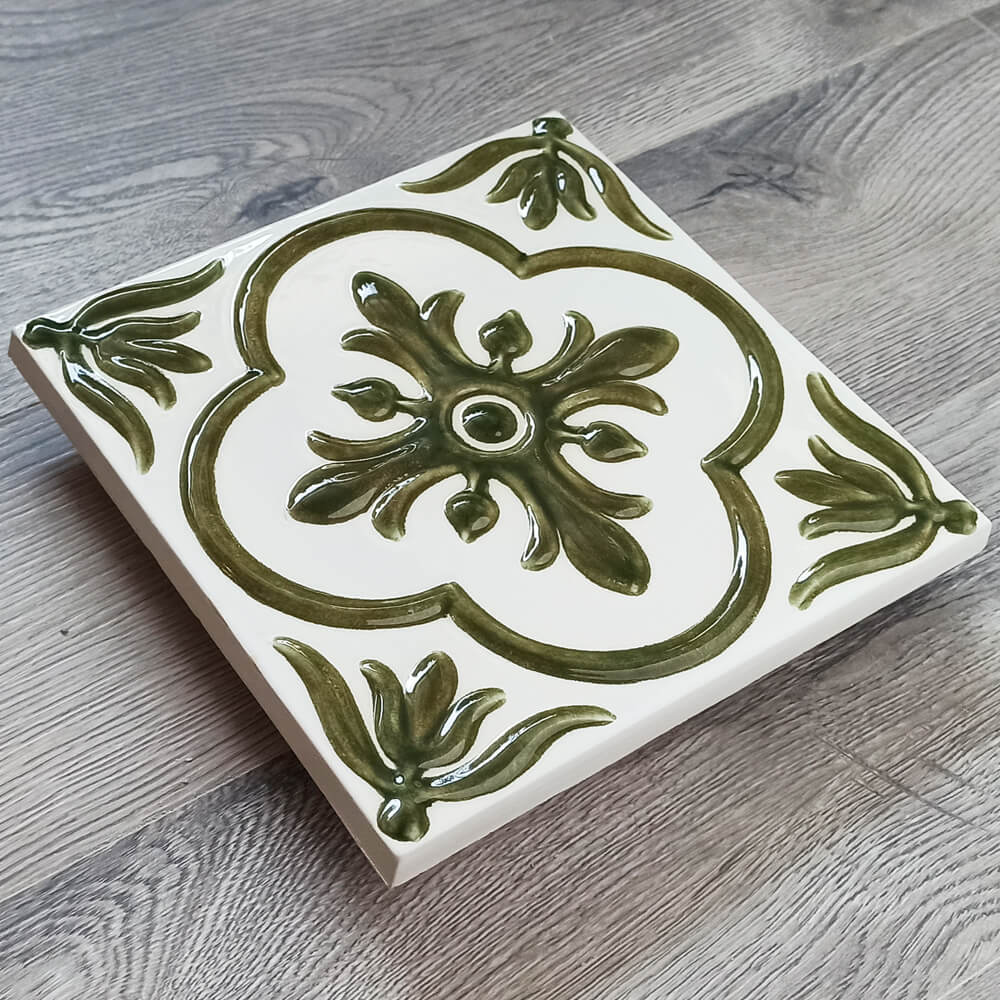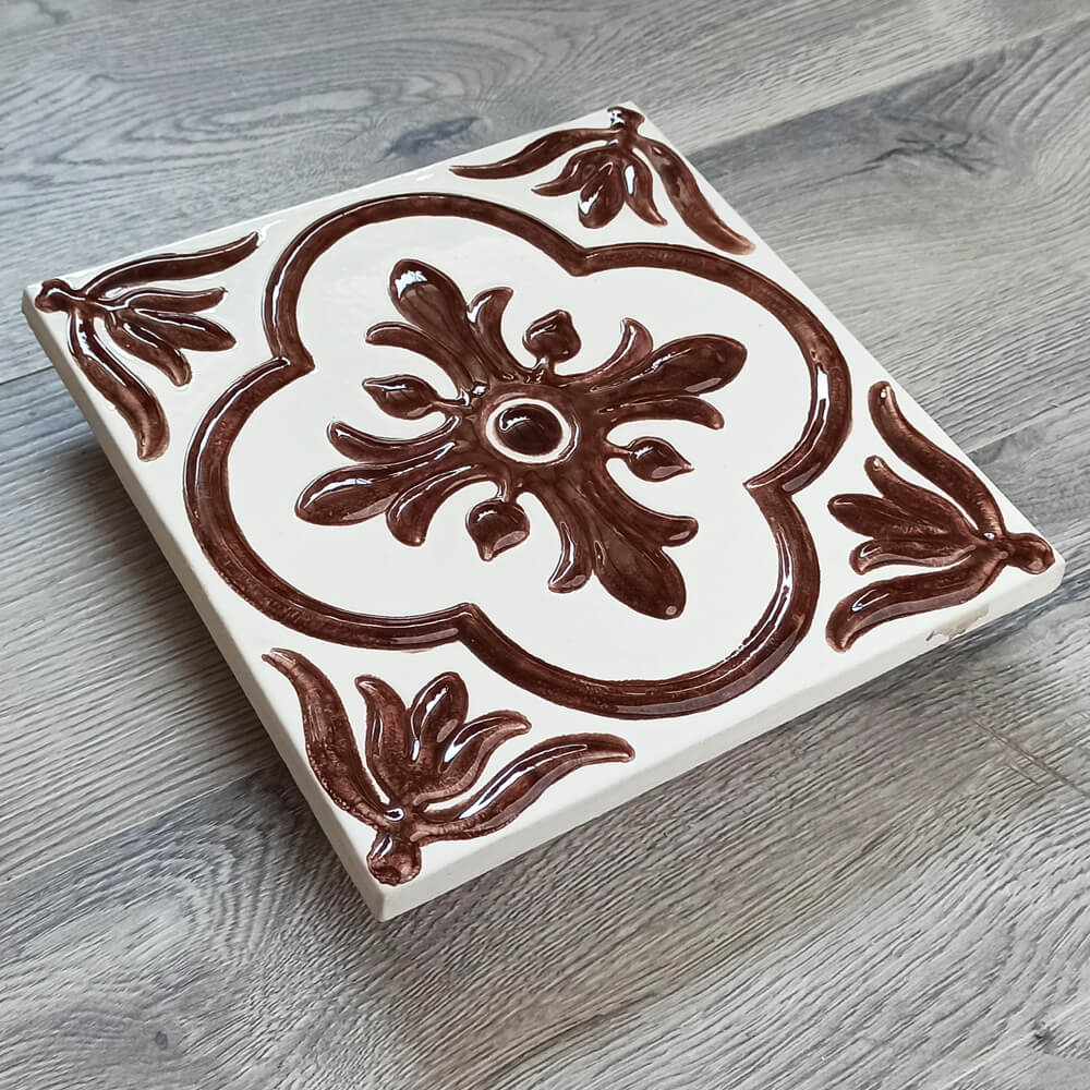 Acest model de teracota s-a inspirat dintr-o placa decorativa spaniola, precum si din ornamentica placilor de teracota din Transilvania. Aceasta placa se realizeaza prin metoda de turnare si are in compozitie materie prima argiloasa din Germania, este o teracota premium. Datorita continutului de praf de samota in cuantum de 40% aceste placi sunt foarte durabile si au o capacitate de acumulare a caldurii mult mai mare fata de placile de teracota fara continut de samota.