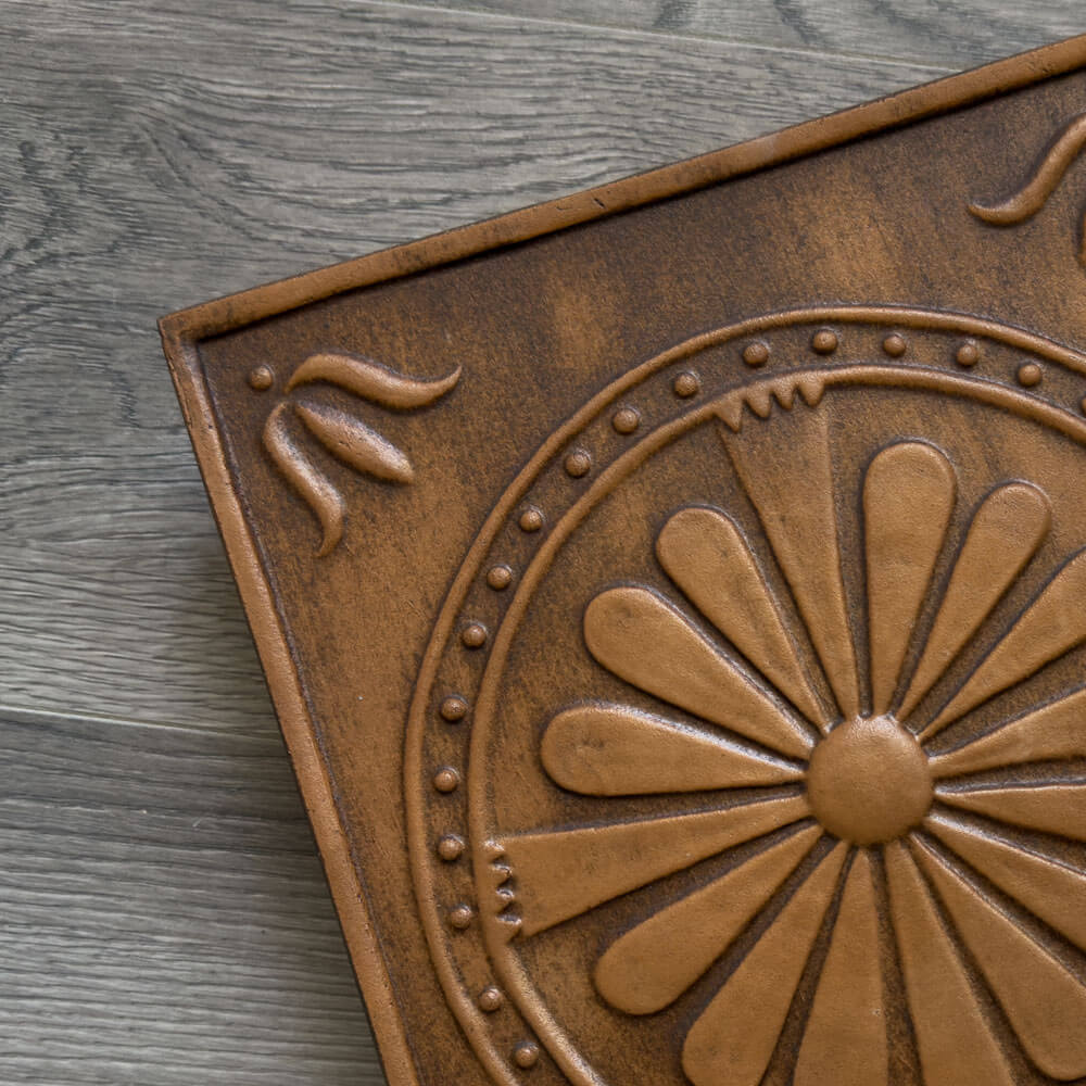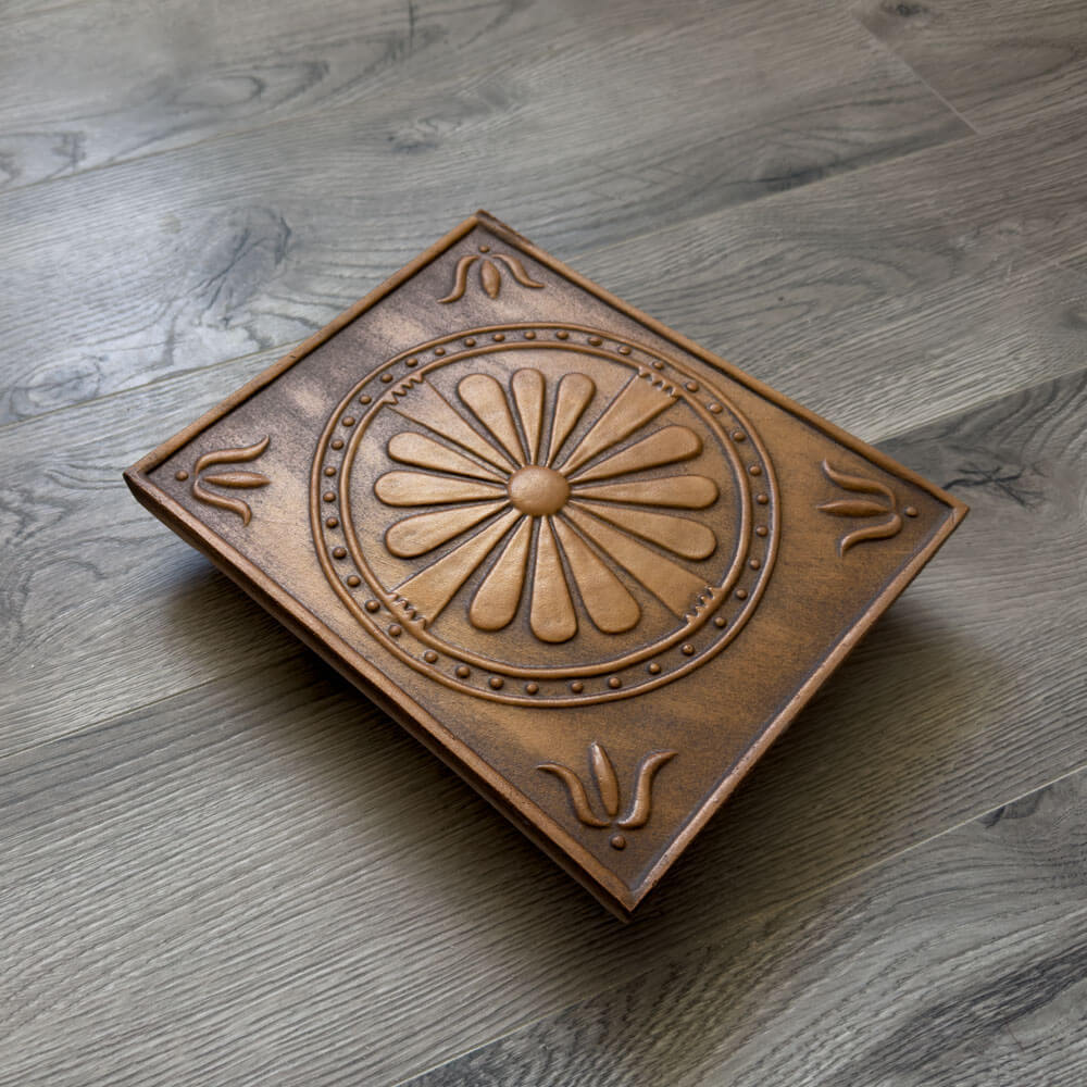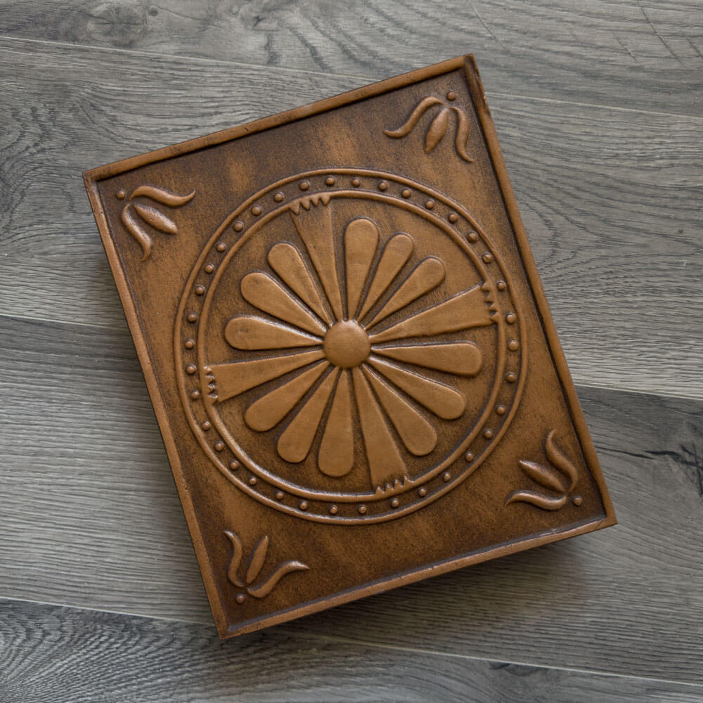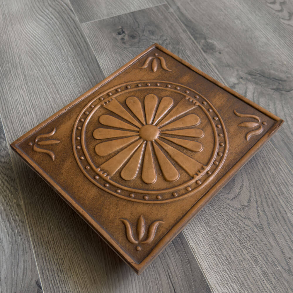 Cahla de teracota decorata cu model floral, realizata in stilul placilor din evul mediu, este decorata cu decor floral stilizat, in colturile placii putem vedea o lalea stilizata. Aceasta cahla de teracota s-a realizat pe baza unui model de reconstructie de cahla, modelul K053, in acest proces am simplificat modelul, pastrand doar elementele cheie din decor.