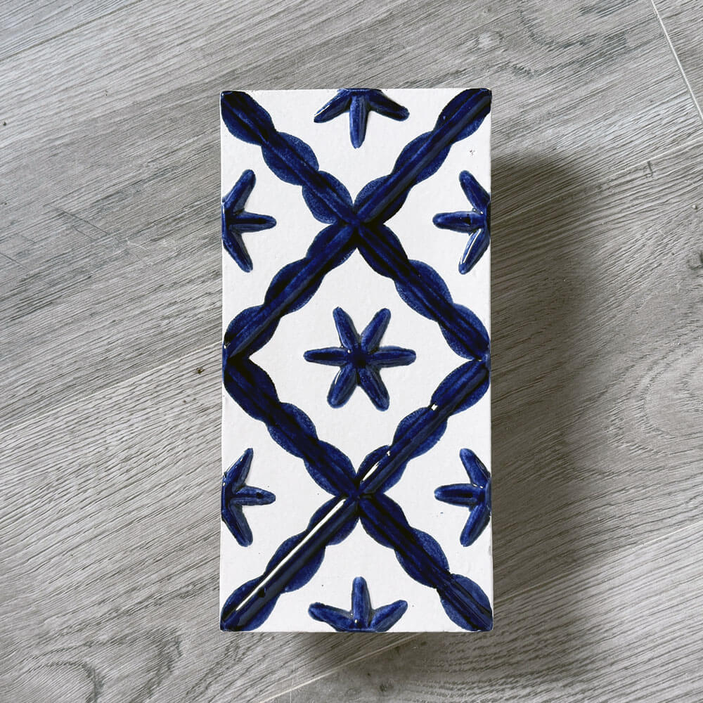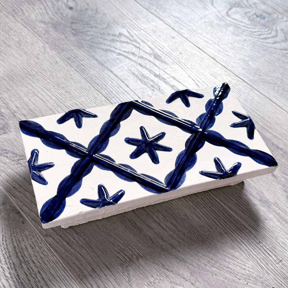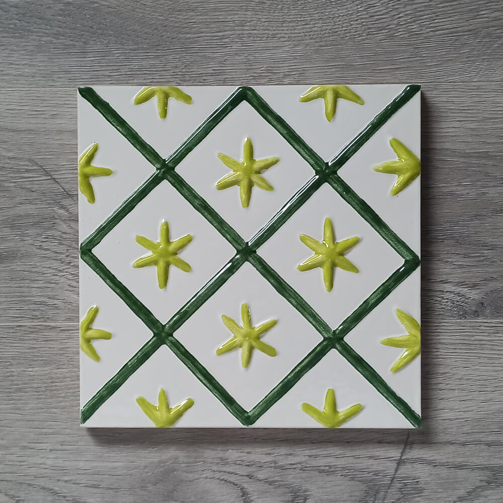 Aceasta cahla se realizeaza prin turnare, din materie prima adusa din Germania. Pe un fond alb sau crem deschis se poate picta cu orice culoare de accent, cum sunt albastru, verde, rosu etc. Se realizeaza la comanda.