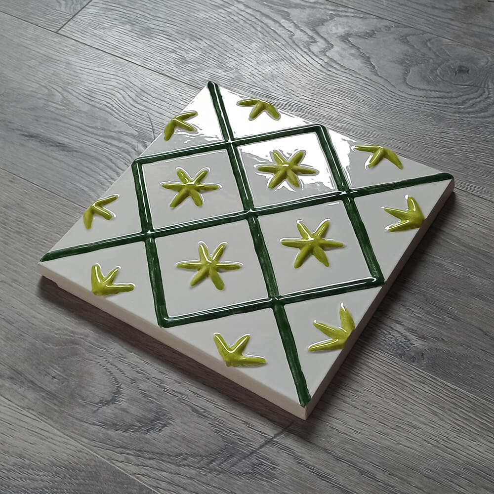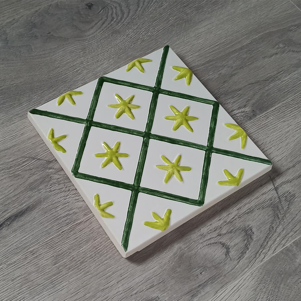 Cahla de teracota cu dimensiunile 23 x 23 cm, inspirata dintr-o placa de teracota saseasca din secolele XVI. – XVII.
