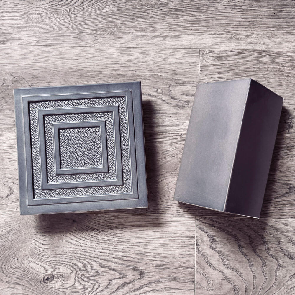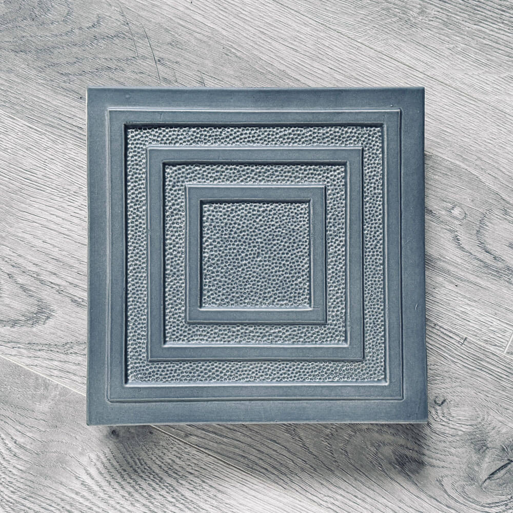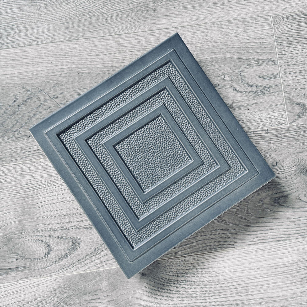 Placa de teracota cu dimensiunile 23 x 23 cm, realizat prin tehnica turnarii in matrite din ipsos. Modelul placii este unul gemotric, care se poate folosi cu usurinta in spatii avand diferite stiluri arhitecturale.