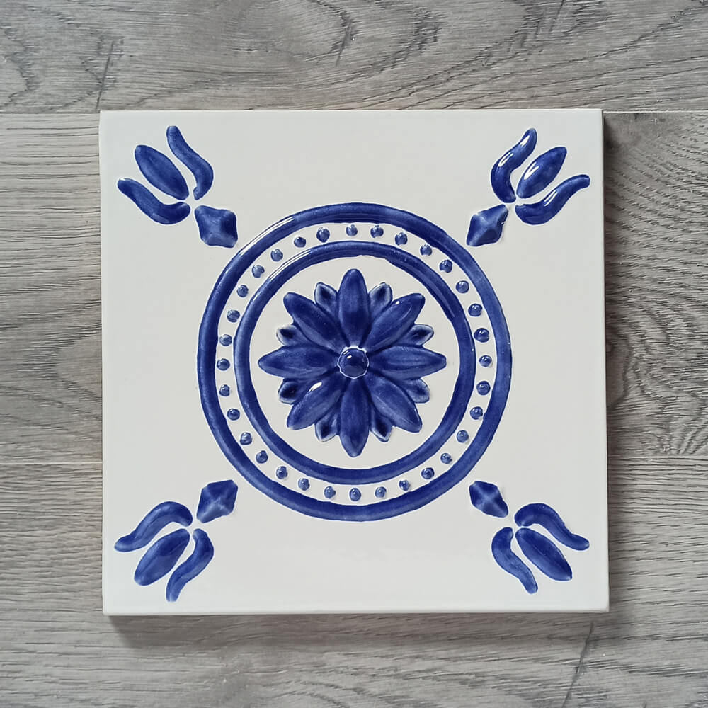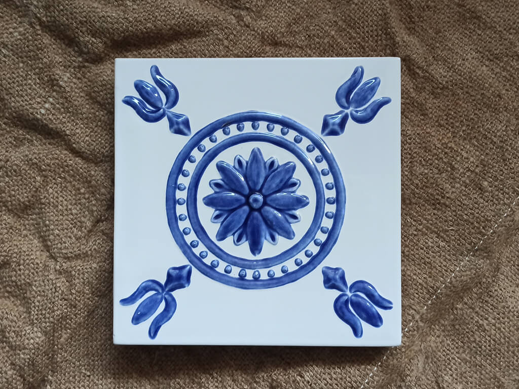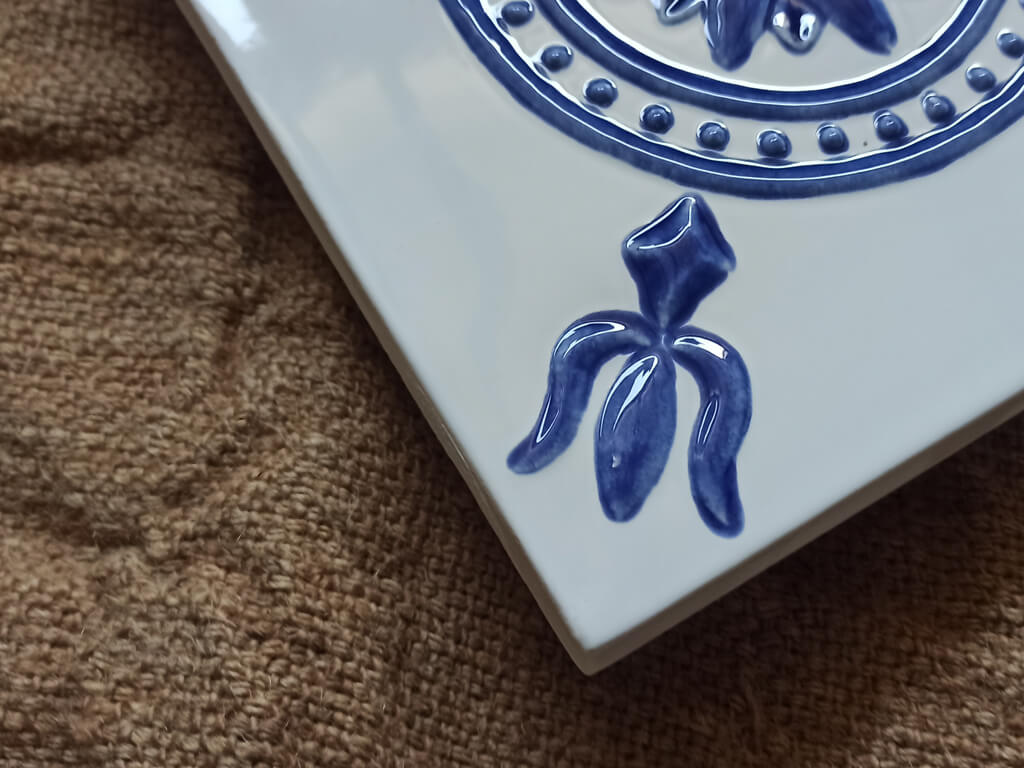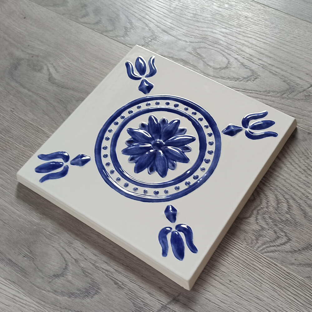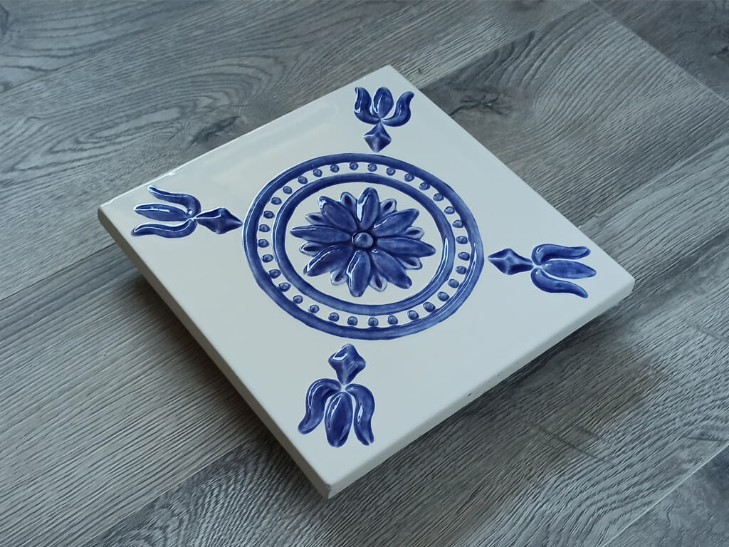 Aceasta cahla se realizeaza prin turnare, din materie prima adusa din Germania. Pe un fond alb sau crem deschis se poate picta cu orice culoare de accent, cum sunt albastru, verde, rosu etc. Se realizeaza la comanda.