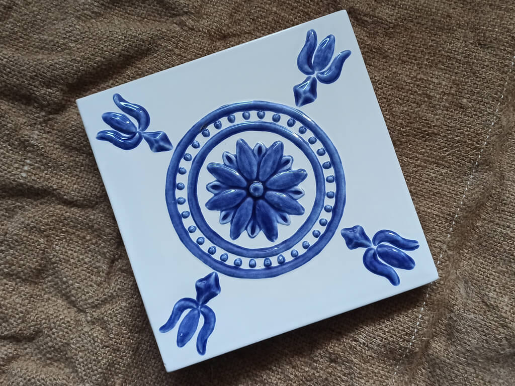 Cahla de teracota cu dimensiunile 23 x 23 cm, fabricata prin turnare. Poate avea spatele cu rama de imbinare (placi de teracota) sau spatele drept daca doriti sa o folositi pentru placare.