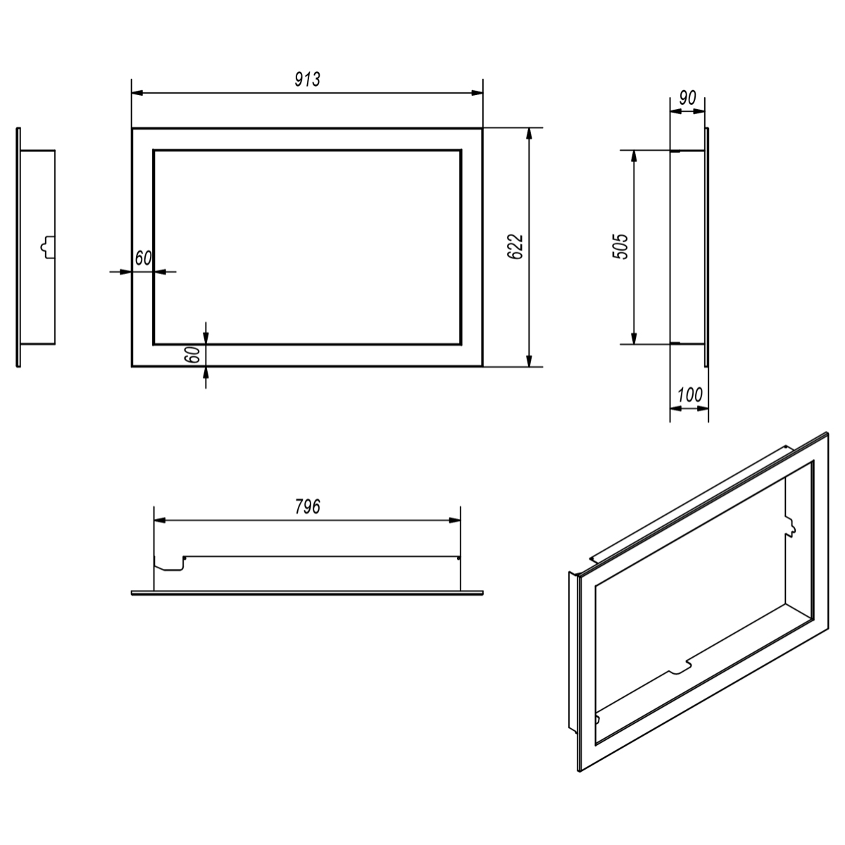Ramele sunt confectionate din metal. Vopsite electrostatic pentru o rezistenta mai mare la zgarieturi. Conturul ramei este de 6 cm latime. Usor de montat, nu necesita unelte. Poate fi montata dupa incastrarea focarului in constructia semineului. Rama se livreaza in culoarea focarului.