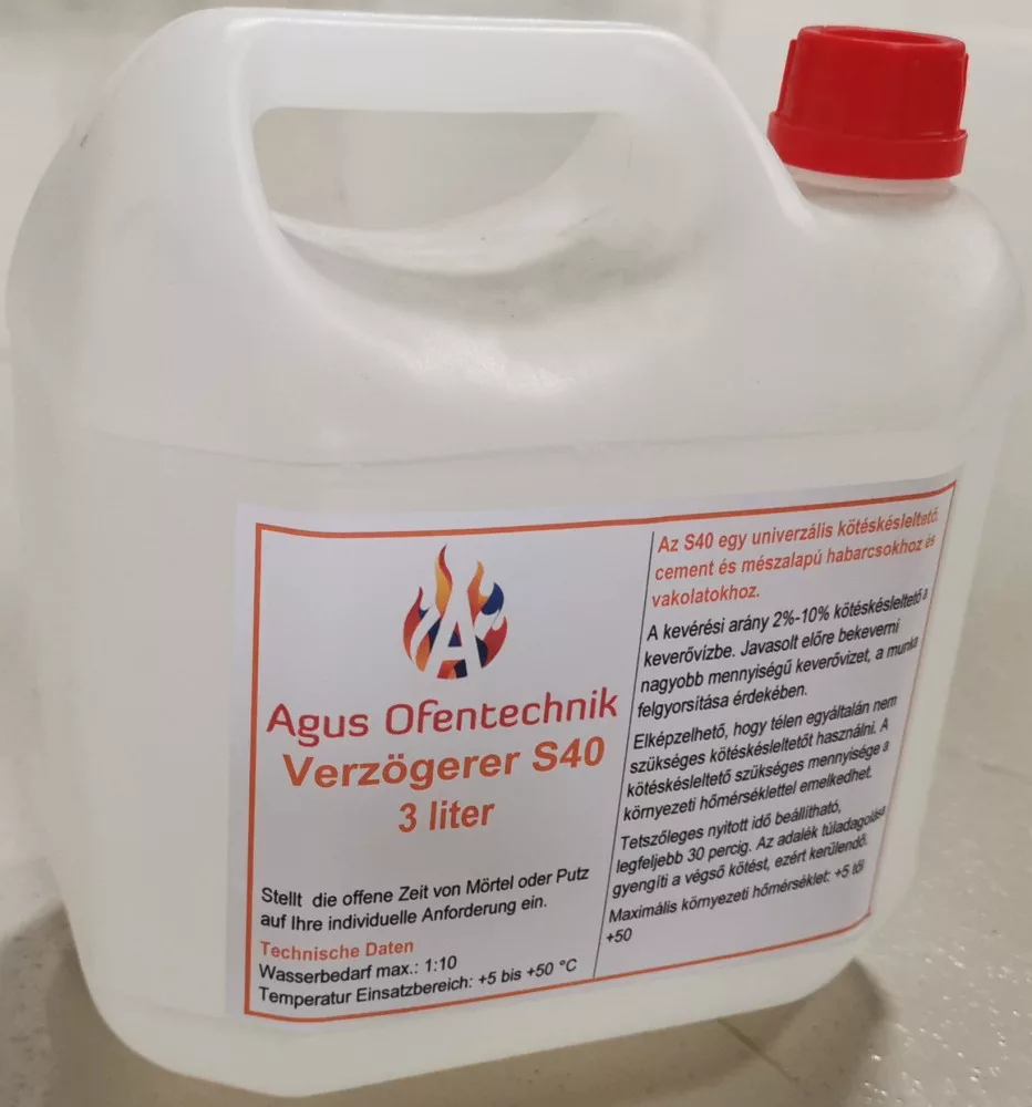 Prima pagină / Materiale montaj / Adezivi, mortare termorezistente, betoane refractare /  Agus Ofentechnik S40 aditiv intarziere priza pentru adeziv termorezistent – 3 litri, 1:10