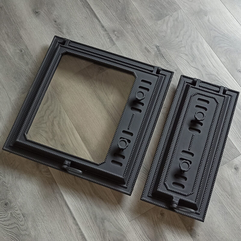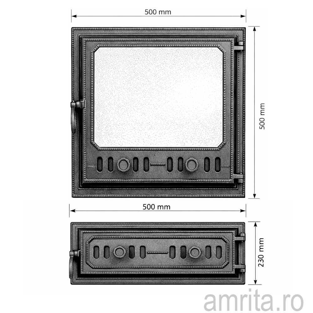 Usa de soba realizata in stil clasic, design dreptunghiular care se potriveste la sobele de teracota realizate in stiluri arhitecturale variate. Usile sunt realizate din fonta de calitate superioara, prevazute cu snur de etansare la inchidere si la sistemul de prindere al geamului. Dispun si de fante pentru administrarea aerului pentru ardere. Usa de alimentare este dotata si cu un parascantei, care protejeaza sticla de lemnele din camera de ardere.